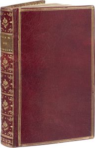 pièce de titre lavallière, nom du relieur en queue, filet sur les coupes, roulette intérieure, doublure et gardes de papier étoilé, tranches dorées (Lainé). Édition originale d’un des ouvrages anciens les plus importants sur les eaux de Pougues en Bourgogne. L’ouvrage se compose de deux parties sous pagination séparée. L’auteur de la première est Joseph Raulin (1708-1784), médecin ordinaire de Louis XV et inspecteur des eaux minérales. La seconde, consacrée à « l’analyse chimique des eaux minérales de Pougues », est l’œuvre du pharmacien et chimiste Jean-Baptiste-Louis Costel (1729-1800). Superbe et rare exemplaire en maroquin rouge de l’époque signé de Lainé. Reçu maître relieur en 1767, Marc-Antoine-Charles-Guillaume Lainé demeurait rue des Amandiers, à Paris, et semble avoir exercé jusqu’en 1810. Ses reliures signées sont extrêmement rares.
