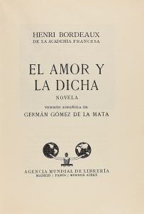 1920 ca. (VANGUARDIAS). GOMEZ DE LA SERNA, RAMON; BEBERIDE [ilustrador]: GREGUERIAS ESCOGIDAS [Más:] BORDEAUX, HENRI; PINAL [ilustrador]: EL AMOR Y LA DICHA. 2 obras encuadernadas en 1 vol. en 8º mayor en dirección inversa. Paris: Agencia Mundial...