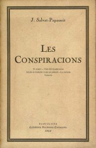 1922. (VANGUARDIAS). SALVAT-PAPASSEIT, J.: LES CONSPIRACIONS. El Somni - Visió del Guadarrama - Ampla és Castella i com un palmell - La cortesia - Tornada. Barcelona: Llibreria Nacional Catalana, 1922. 8º. 25 hojas. Lámina y colofón ilustrados...