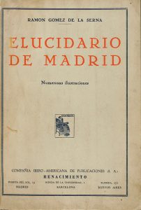 1931. (VANGUARDIAS-1ª EDICION). GOMEZ DE LA SERNA, RAMON: ELUCIDARIO DE MADRID. Barcelona: CIAP-Renacimiento, 1931. 8º mayor. 443 p., 3 h. Ilustr. en texto. Enc. media piel con nervios conservando cubs. orig. rústica. Enc. en tela con tejuelo....