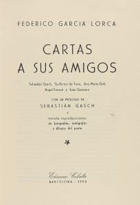 1950. (VANGUARDIAS). GARCIA LORCA, FEDERICO: CARTAS A SUS AMIGOS. Prólogo de Sebastián Gasch. Barcelona: Ed. Cobalto, 1950. 4º menor. 98 p. Con ilustraciones fuera de texto, y facsímiles de cartas manuscritas por Lorca. Rústica editorial....