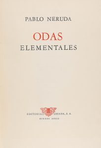 1954. (VANGUARDIAS-1ª EDICION). NERUDA, PABLO: ODAS ELEMENTALES. Buenos Aires: Ed. Losada., 1954. 4º mayor. 228 p. Intonso. Rústica ilustrada por BALLESARI. Buen estado de conservación.