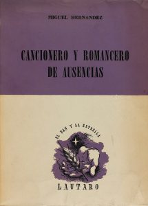1958. (GENERACION 27). HERNANDEZ, MIGUEL: CANCIONERO Y ROMANCERO DE AUSENCIAS. Argentina: Ed. Lautaro, 1958. 8º. 135p., 4 p. Intonso. Rústica editorial.