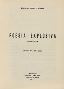 1973. (VANGUARDIAS-POESIA). GOMEZ-CORREA, ENRIQUE: POESIA EXPLOSIVA. Santiago de Chile: Mandragora, 1973. 8º. 378 p. Rústica editorial.