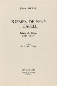 1977. (BROSSA). BROSSA, JOAN: POEMES. Barcelona: Ed. Ariel, 1977. 8º mayor. 816 p. Rústica editorial ilustrada por Tapies.