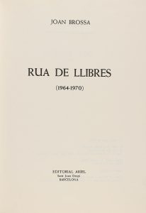 1980. (BROSSA). BROSSA, JOAN: RUA DE LLIBRES. Barcelona: Ed. Ariel, 1980. 8º mayor. 588 p., 4 h. Rústica editorial ilustrada por Tapies.