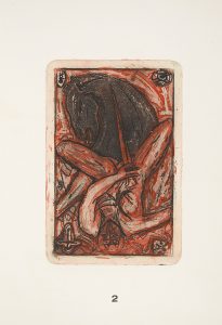 1987. (BIBLIOFILIA). BROSSA, JOAN: JOC DE CARTES. Barcelona: Editorial Galeria - Edicions l´Aixa, 1987. Folio. Papel de hilo. Cartoné editorial. 8 p. desplegables en acordeón, con 4 aguafuertes de Víctor Ramírez. Edición numerada y limitada a...