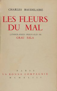 1943. (BIBLIOFILIA-ILUSTRACIONES). BAUDELAIRE, CHARLES; SALA, GRAU [ilustrador]: LES FLEURS DU MAL. Litographies originales de Grau Sala. Paris: La Bonne Compagnie, 1943. 8º mayor. 4 h., 315 p., 1 h. Ilustrado con 6 litografías en color de GRAU...