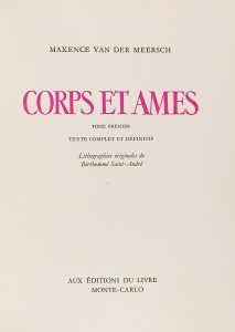 1948. (BIBLIOFILIA). VAN DER MEERSCH, MAXENCE: Lausanne: Imp. Centrale, las litografias en Paris: Mourlot, 1948. 2 vols. en 4º menor. I: 396 p., 2 h.; II: 358 p., 2 h. Ilustr. con litografias de Berthomme Saint-Andre. Rústica. Edición numerada de...