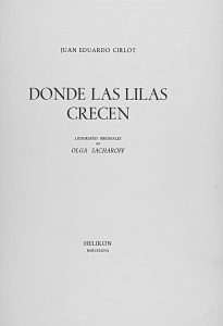 1946. (BIBLIOFILIA). CIRLOT, JUAN EDUARDO: DONDE LAS LILAS CRECEN. Barcelona: Helikon, 1946. 4º mayor. 51 p., 1 h. 8 láminas litográficas en color de OLGA SACHAROFF. Ejemplar en rama. Rústica. Edición numerada de un tiraje de 170 ejemplares...