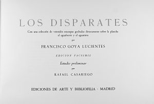 1974. (FACSIMIL). GOYA Y LUCIENTES, FRANCISCO DE: LOS DISPARATES. Con una colección del veintidós estampas grabadas directamente sobre la plancha al aguafuerte y al aguatinta. Estudio preliminar por Rafael Casariego. Madrid: Eds. de Arte y...