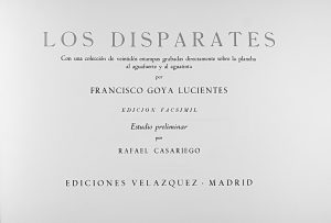 1974. (FACSIMIL). GOYA Y LUCIENTES, FRANCISCO DE: LOS DISPARATES. Con una colección del veintidós estampas grabadas directamente sobre la plancha al aguafuerte y al aguatinta. Estudio preliminar por Rafael Casariego. Madrid: Eds. Velazquez, 1974....