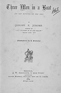 1889. JEROME, JEROME K.: THREE MEN IN A BOAT. Illustrations by A. Frederics. Bristol: JW Arrowsmith, 1889. 8º mayor. 315 p., 1 h. Ilustr. en texto. Leves puntos de óxido en primeras y últimas páginas. Enc. en tela edit.