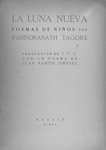 1915. (LITERATURA). TAGORE, RABINDRANATH. LA LUNA NUEVA. Poemas de niños. Traducción de Z.C.A. con un poema de Juan Ramón Jiménez. Madrid: Imp. Clásica española, 1915. 4º. 107 p., 1 h. Rústica edit. con manchas de óxido, pequeñas manchas...