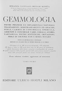 1972. (GEMOLOGIA). CAVENAGO, SPERANZA; MONETA, BIGNAMI: GEMMOLOGIA. Pietre preziose ed ornamentali natralo, transparenti, semitransparente ed opache... Milano: Edit. Ulirco Hoepli, 1972. 2 vols. en 4º menor. I: LVII + 752 p.; II: 753-1526 p. Abund....