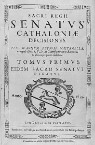 1639. (CATALUNYA). FONTALENNA, JOAN: SENATUS CATHALONIAE DECISIONES. VOL I. Barcinone: Petri Lacavalleria, 1639 - 1645. 2 vols. en folio. I: 14 h., 766 p., 65 h.; II: 808 p., 56 hojas. 1 lámina. Enc. pergamino de época. Primera edición. Ejemplar...