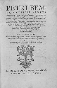 1567. (HUMANIDADES). BEMBI, PETRI: PETRI BEMBI, PATRICII VENETI QUAECUNQ USUQUAM PRODIERUNT OPERA IN INUM CORPUS COLLECTA & NUNC DENUM. Basileae: per Thomam Guarinum, 1567. 8º menor. 16 h. + 645 p. Enc. pergamino.