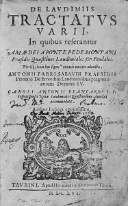 1616. (HUMANIDADES). APONTE, AMAEDEI: DE LAUDIMIIS TRACTATUS VARII, IN QUIBUS RESERANTUR. Taurini: apud haeredes Io. Dominci Tarini, 1616. 8º. 20 h. + 782 p. Marca tipográfica en portada. Varios ex-libris manuscritos. Enc. en pergamino.