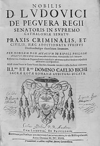 1649. (DERECHO). CAELO BOCHI, DOMINO: NOBILIS D. LUDOVICI DE PEGUERA REGII SENATORIS IN SUPREMO CATHALONIAE SENATU PRAXIS CRIMINALIS ET CIVILIS, HAEC ADDITIONATA IURIBUS. Barcinone: ex Praelo, ac aere Antonii La Cavalleria, 1649. 4º mayor. 6 h. +...