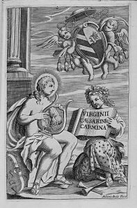 1669. (HUMANIDADES). PETRONIO, NICOLAO: VIRGINII CAESARINI CARMINA. Venetiis: apud Heredes Francisci Storti et Io. Marie Pancirutti, 1669. 8º menor. Frontis grabado + 15 h. + 132. Viñetas. Enc. en pergamino.