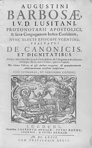 1679. (RELIGION-DERECHO CANONICO). BARBOSAE, AUGUSTINI: TRACTATUS DE CANONICIS, ET DIGNITATIBUS. ALIISQUE INFERIORIBUS Beneficiariis Cathedralium, & Collegiatarum Ecclesiarum, eorumque officiis, tam in choro, quam in Capitulo. Lugduni (Lyon):...