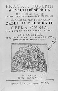1755. (RELIGION-MONTSERRAT). SANCTO BENEDICTO, JOSEPHI: OPERA OMNIA TUM LATINO, TUM HISPANO SERMONE CONSCRIPTA... Gerundae: Typis Antonii Oliva, 1755. 4º mayor. Portada + retrato del autor + 26 h. + 430 p., 3 h. Portada a dos tintas con un grabado...