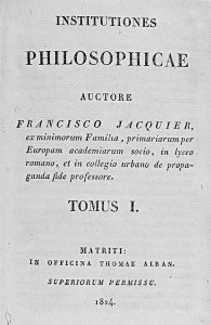 1815-1824. (HUMANIDADES). JACQUIER, FRANCISCO: INSTITUTIONES PHILOSOPHICAE. Volumenes de diferentes ediciones. Tomo I: Matriti: in officina Thomae Alban, 1824; El tomo II: Matriti: Ex. Typ. Callis de la Greda, 1821; Tomos III al V: Valentiae:...