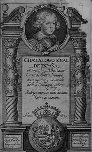 1637. (HISTORIA ESPAÑA). MENDES SILBA, RODRIGO: CHATALOGO REAL DE ESPAÑA. Madrid: A costa de Alonso Peres, librero de Su Magestad, [en colofón: en la Imprenta del Reyno],1637. 8º. 14 p. + 135 p., 1 h. Portada grabada. Enc. en media piel,...