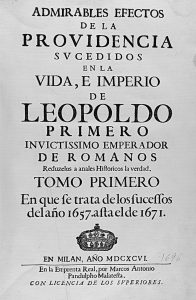 1696. (HISTORIA). RONCAGLIA, CONSTANTINO: ADMIRABLE EFECTOS DE LA PROVIDENCIA EN LA VIDA E IMPERIO DE LEOPOLDO PRIMERO, INVICTISSIMO EMPERADOR DE ROMANOS, REDUZELOS A ANALES HISTORICOS LA VERDAD. Milan: Emprenta Real por Marcos Antonio Pandulpho...