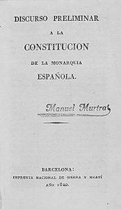 1820. (CONSTITUCION). DISCURSO PRELIMINAR A LA CONSTITUCION DE LA MONARQUIA ESPAÑOLA. Barcelona: Imp. Nacional de Serra y Martí, 1820. 8º menor. 110 p. [Sigue:] CONSTITUCION POLITICA DE LA MONARQUIA ESPAÑOLA PROMULGADA EN CADIZ A 19 DE MARZO DE...
