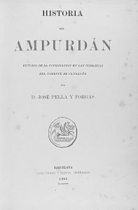 1883. (EMPORDA). PELLA Y FORGAS, JOSE: HISTORIA DEL AMPURDAN. ESTUDIO DE LA CIVILIZACION EN LAS COMARCAS DEL NORESTE DE CATALUÑA. Barcelona: Luis Tasso y Serra, imp., 1883. 4º. 788 p. Abund. láms. y dos plano plegado. Enc. en media piel, nervios.