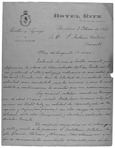1922. (LICEO). CONJUNTO DE 10 CARTAS DE POSTULANTES AL PUESTO DE MAYORDOMO-ADMINISTRADOR DE LA SOCIEDAD DE PROPIETARIOS DEL ´GRAN TEATRO DEL LICEO´. Un total de 10 cartas, varias mecanografíadas, otras manuscritas donde los postulantes comunican...