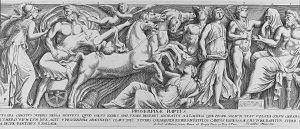 1730 ca. BARTOLUS, PIETRO SANCTUS: 9 GRABADOS DE LA SERIE DE LA COLUMNA TRAJANA. 8 de papel 24x39 cm, plancha 16x38 cm; 1 de papel 47x29, plancha 19x21 cm.