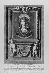 1769. (VALENCIA). LOPEZ, VICENTE (lo dibujó); CAPILLA, VICENTE (lo grabó): IMAGEN DE N.S. DE LORETO. Grabado al cobre. 28c20 cm. plancha; 44x31 cm. papel.