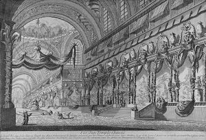 1800 ca. (CHINA). VUE D´UN TEMPLE CHINOIS. Grabado al cobre, coloreado, 29 x 43 cm.