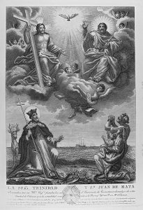 1849. (VALENCIA). LA SSma. TRINIDAD Y Sn. JUAN DE MATA Venerados por su Ilustre Cofr. fundada en el Convento de los Trinitarios descalzos de esta ciudad de Valencia y en la actualidad existente en la Parroquia de El Proto Mr. S. Estevan. Grabado al...