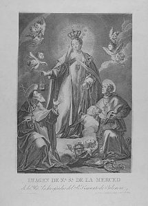 1852. (VALENCIA). ROCAFORT: IMAGEN DE N.S. DE LA MERCED DE LA ILUSTRE COFRADIA DEL CONVENTO DE VALENCIA. Grabado al cobre. 30x21 cm. plancha; 36x27 cm. papel.