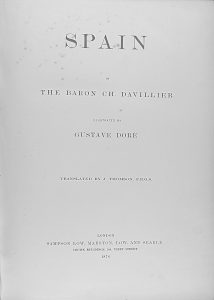 1876. (GRABADOS-ESPAÑA). DAVILLIER; DORE, GUSTAVE [ilustrador]: SPAIN BY THE BARON ... London: Sampson Low, Marston, 1876. Folio mayor. 512 p. Ilustraciones en el texto y láminas de grabados de Doré. Enc. en tela editorial decorada, algo...