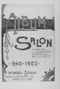 1897-1903. (ARTE). ALBUM SALON. Barcelona: Miguel Seguí, 1897-1903. 5 vols. en gran folio. Abund. ilustr. en b/n y color. Enc. en tela con el lomo en piel, excepto el vol. de 1903 enc. en tela con los planos decorados con dorados. Dos de los vols....