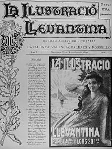 1900-1901. LA ILUSTRACIO LLEVANTINA. REVISTA ARTISTICH-LITERARIA DE CATALUNYA, VALENCIA, BALEARES Y ROSSELLO. Barcelona: Fidel Giró, 1900-1901. Folio mayor. Revistas correspondientes a los números de 2 a 16, 18 a 21, 23 a 27. 328 p. Texto a dos...