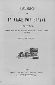1862. (VIAJES). RECUERDOS DE UN VIAGE POR ESPAÑA. TOMO PRIMERO. Castilla, Leon, Oviedo, Provincias Vascongadas, Asturias, Galicia, Navarra. Madrid: Imp. del Est. de Mellado, 1862. 4º menor. 536 p., 2 h. Ilustr. con láms. Enc. en media piel.