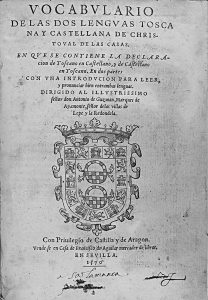 1570. (LINGÜISTICA). CASAS, CHRISTOVAL DE LAS: VOCABULARIO DE LAS DOS LENGUAS TOSCANA Y CASTELLANA DE CHRISTOVAL DE LAS CASAS EN QUE SE CONTIENE LA DECLARACION DE TOSCANO EN CASTELLANO Y DE CASTELLANO EN TOSCANO. Sevilla: vendese en casa de...