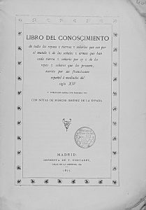 1877. LIBRO DEL CONOSCIMIENTO por un franciscano español del siglo XIV. De todos los reynos e tierras e señoríos que son por el mundo e de las señales e armas que han cada tierra e señorío por sy e de los reyes e señores que los promueen,...