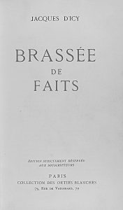 1926 ca. (EROTICA). D´ICY, JACQUES: BRASSÉE DE FAITS. Paris: Collection des Orties Blanques, s.a. 8º mayor. 316 p., 3 h. Ilustr. eróticas de Louis Malteste, láms. ilustr. con graciosas escenas eróticas levemente sadomasoquistas, muy de...