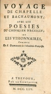 CHAPELLE (C.-E. L.) et BACHAUMONT (F. Le Coigneux de). Voyage de Chapelle et Bachaumont, avec les Poésies du chevalier d'Aceilly [Jacque de Cailly], et les Visionnaires, comédie de J[ean] Desmarets de l'Académie françoise. Trévoux, Par la...