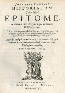 CLÜVER (Johann).- Johannis Cluveri Historiarum totius mundi Epitome, a prima rerum origine usque ad annum Christi M DC XXX. [...] Editio sexta correctior. Cum uberrimo indice. Lugduni Batavorum [à Leyde], Ex Officina Francisci Moyardi, 1667, 4°,...