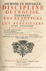 THOMASSIN (Louis). Ancienne et nouvelle discipline de l'Église, touchant les bénéfices et les bénéficiers. Nouvelle édition revue, corrigée, et rangée suivant l'ordre de l'édition latine, avec ses augmentations. Paris, François Montalant,...