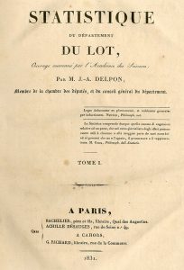 DELPON (J.-A.). Statistique du département du Lot. Paris, Bachelier père et fils, Achille Désauges ; Cahors, G. Richard, 1831, 2 vol. 4°, XIX-554 (pag. sans manque de texte : 1-520, 525-540, 537-554)-[1 (Errata)]-1 blanche, et [4]-494 (pag. sans...