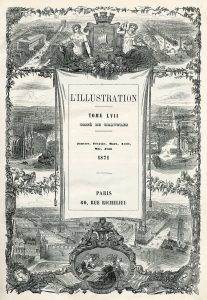 L'Illustration. Journal universel. Tome LVII, 1er semestre (janvier-juin 1871). P., 1871, in-folio, nombr. gravures in-texte, demi-basane bleu foncé, dos lisse, titre et filets dorés (rel. frottée). Intéressante iconographie d'époque sur le...