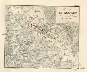 (28 cartes num. de I à XXVIII, 16 bis, 18 bis, 5 plans lettrés de A à E)), cart. édit. défraichi, mouill. à 1 carte. Pllusieurs cartes ont des petites cartes superposées pour montrer les différents moments de la bataille, les positions des troupes sont en couleurs.
